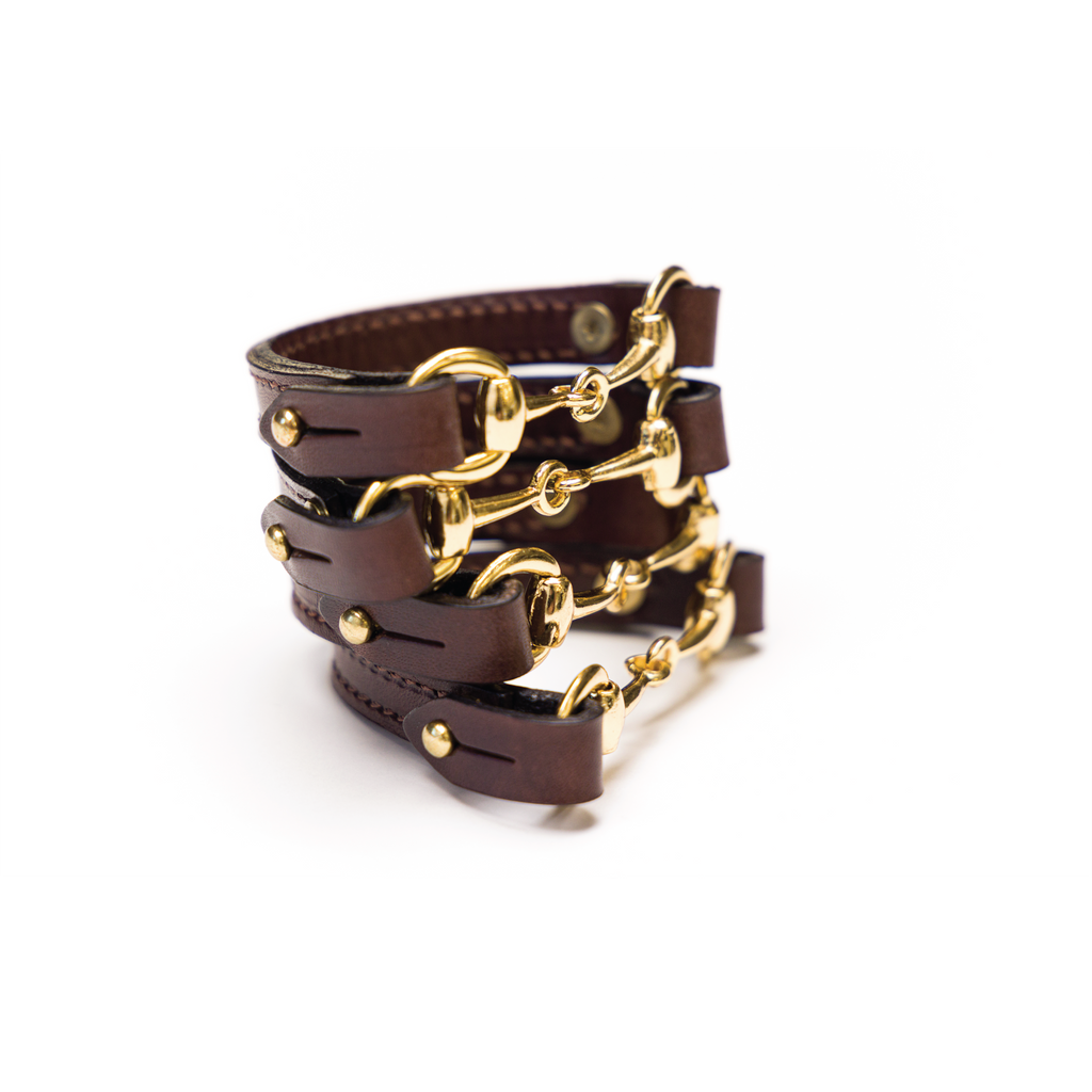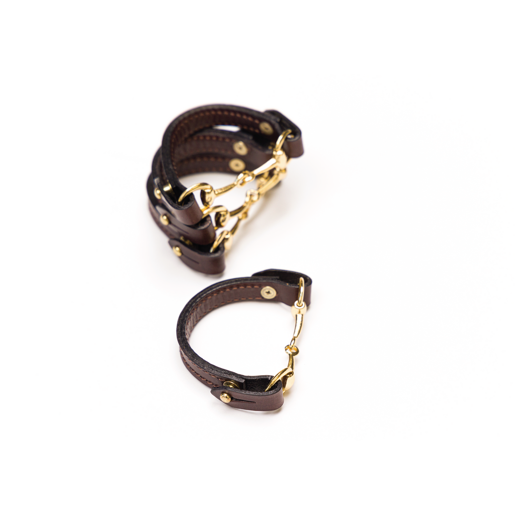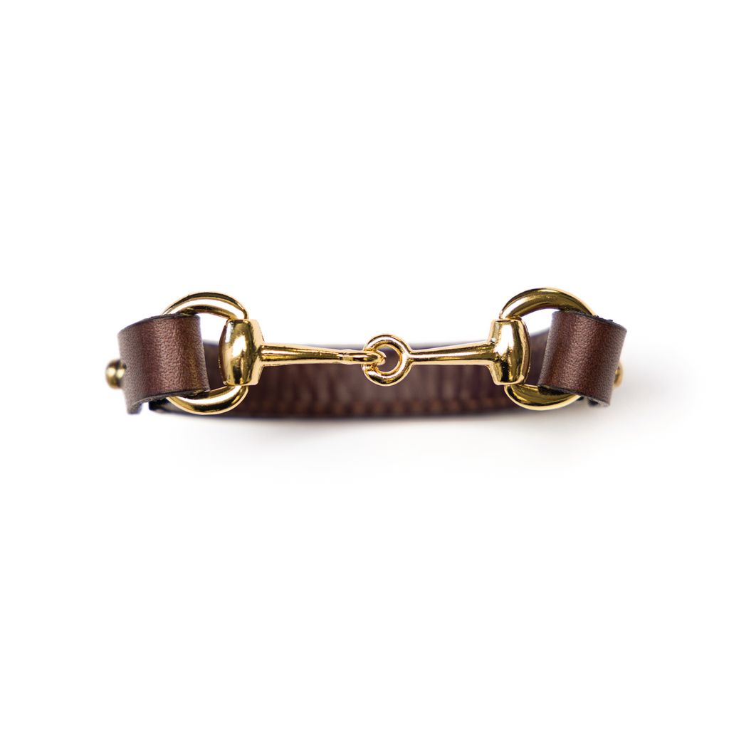 This Brass Saddle Horse Bit Bracelet makes the perfect gift, featuring a simple strap of saddle leather with a brass bit. Available in sizes S-L.